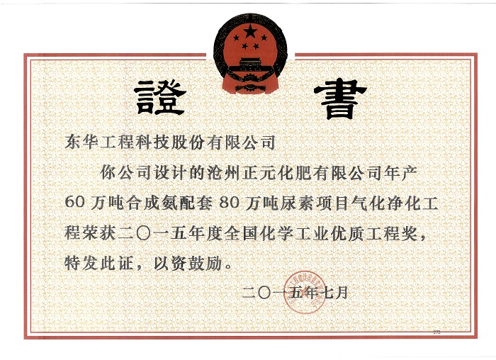 項(xiàng)目:滄州正元化肥有限公司年產(chǎn)60萬噸合成氨配套80萬噸尿素項(xiàng)目氣化凈化工程
