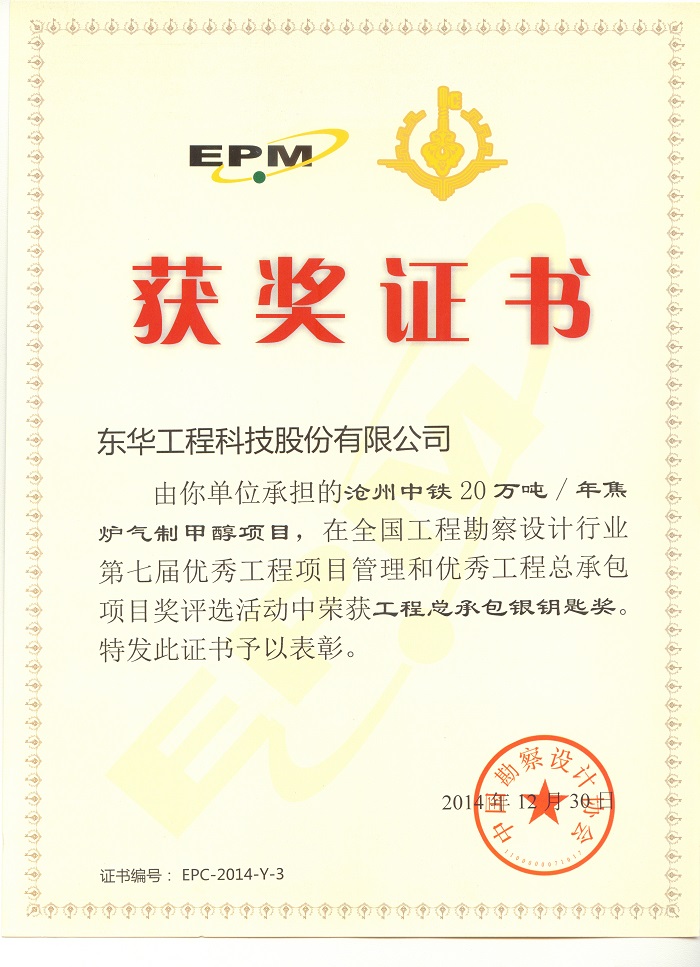 名稱:工程總承包銀鑰匙獎(jiǎng)