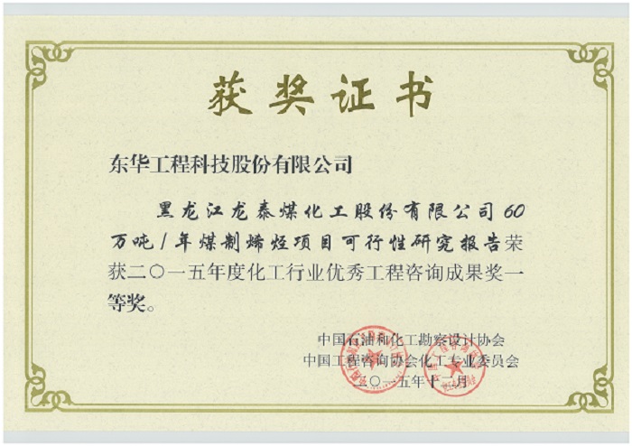名稱:化工行業(yè)優(yōu)秀工程咨詢成果獎(jiǎng)一等獎(jiǎng)