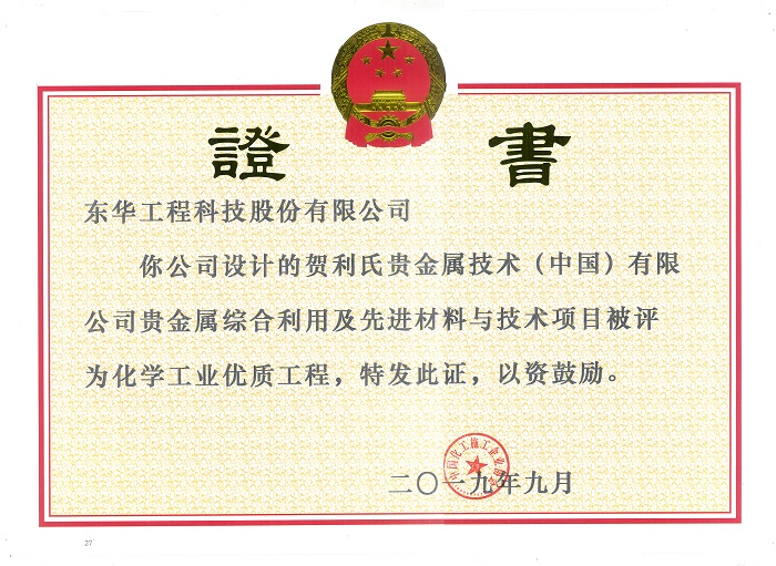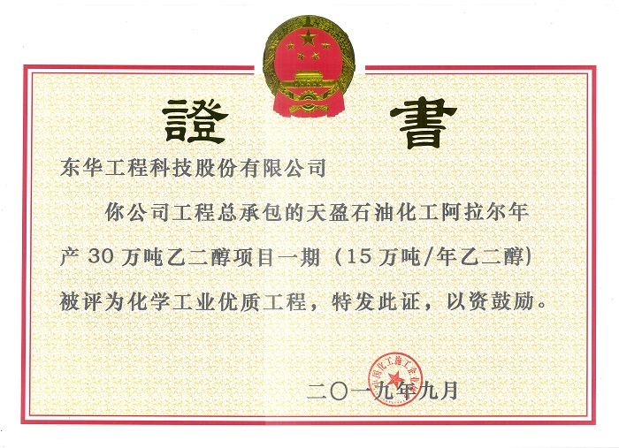名稱:化學(xué)工業(yè)優(yōu)質(zhì)工程獎(jiǎng)