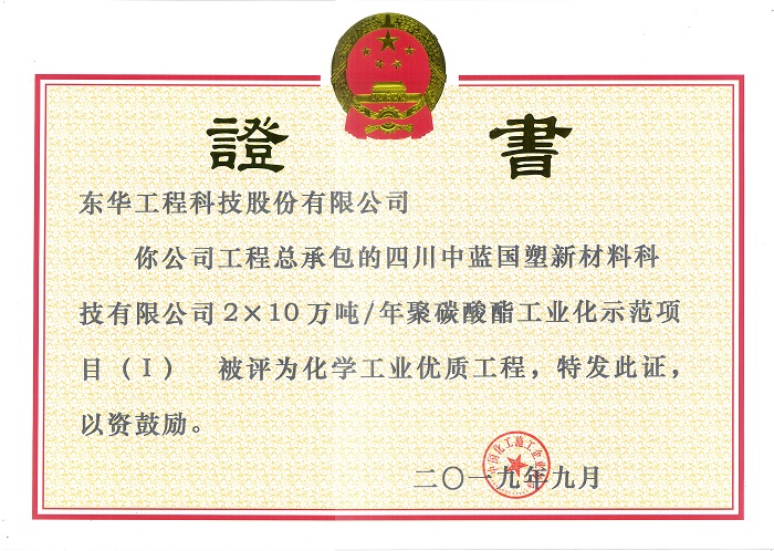 名稱:全國化學(xué)工業(yè)優(yōu)質(zhì)工程獎(jiǎng)