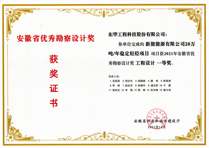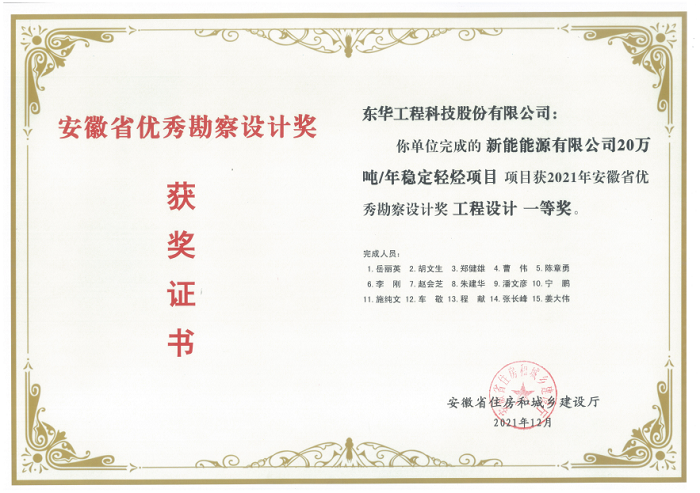 名稱:安徽省優(yōu)秀勘察設(shè)計(jì)獎(jiǎng)工程設(shè)計(jì)一等獎(jiǎng)