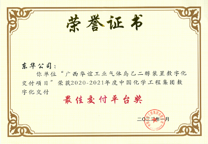名稱:中國化學(xué)最佳交付平臺(tái)獎(jiǎng)